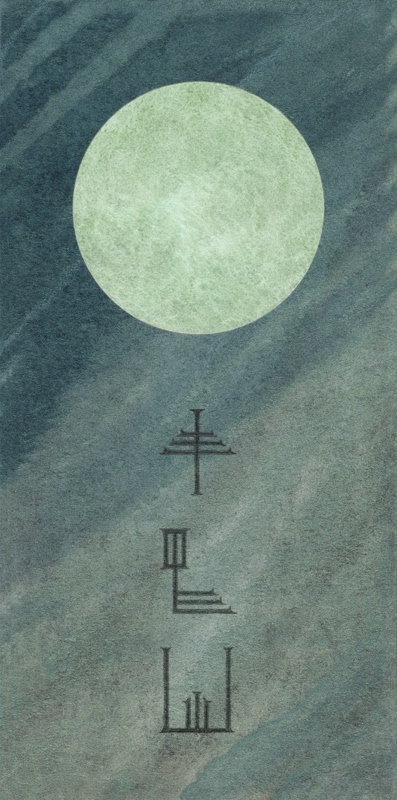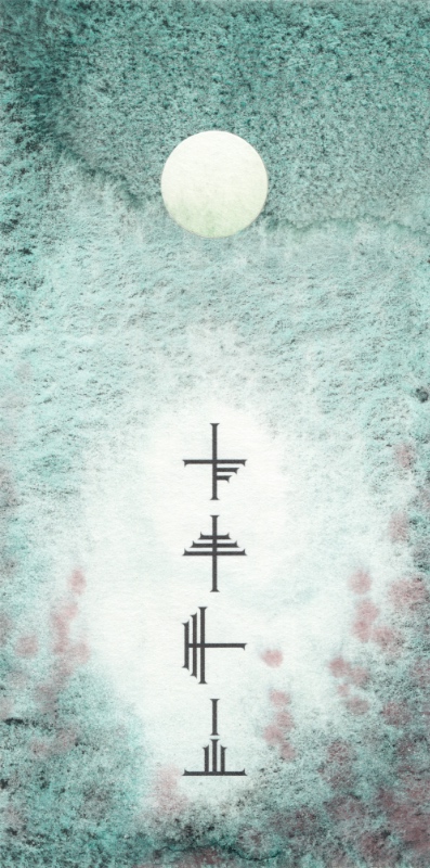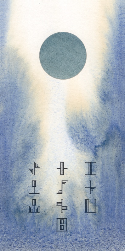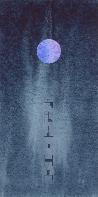 With this series of small paintings I express my love for the moon, our mysterious light in the night sky. The poetry is written with asemic script, evoking meaning without actual language, to be read and interpreted by your own imagination.